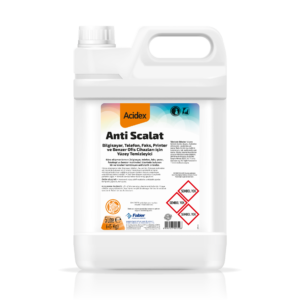 “Acidex Anti Scalat”, Büro ekipmanlarının (bilgisayar, telefon, faks, yazıcı, fotokopi ve benzer makineler) üzerinde bulunan kir ve lekeleri temizleyen anti statik üründür.